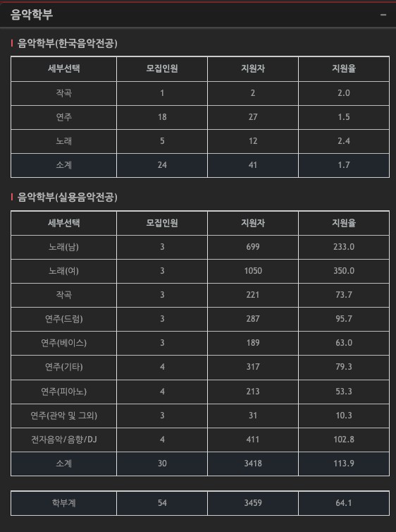 서울예술대학교 음악학부 수시 경쟁률